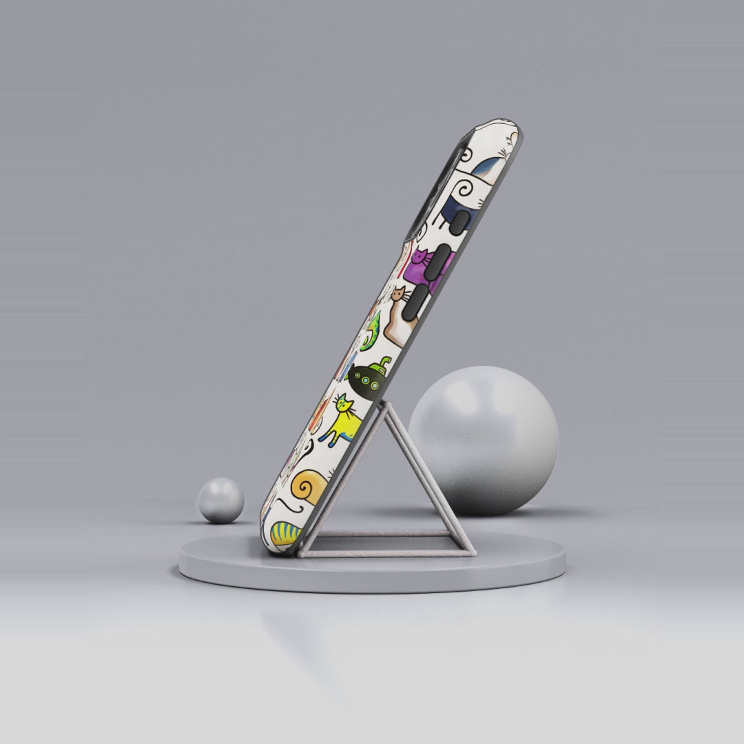 Una custodia sottile e resistente che porta con sé una giocosa sfilata di gatti colorati nel tuo dispositivo quotidiano. La scocca a doppio strato (esterno in policarbonato con rivestimento in silicone TPU) attutisce le cadute, mentre la stampa 3D avvolgente mantiene vividi ogni baffo, riga e tocco di colore. Dotata di un modulo magnetico per accessori MagSafe® e di aperture trasparenti, questa custodia rimane perfettamente funzionale: la finitura lucida o opaca ti permette di scegliere la sensazione più adatta. È il tipo di accessorio che ti fa sorridere quando prendi il telefono, lo protegge dagli urti quotidiani e mostra la tua passione per i personaggi felini eccentrici e disegnati a mano.