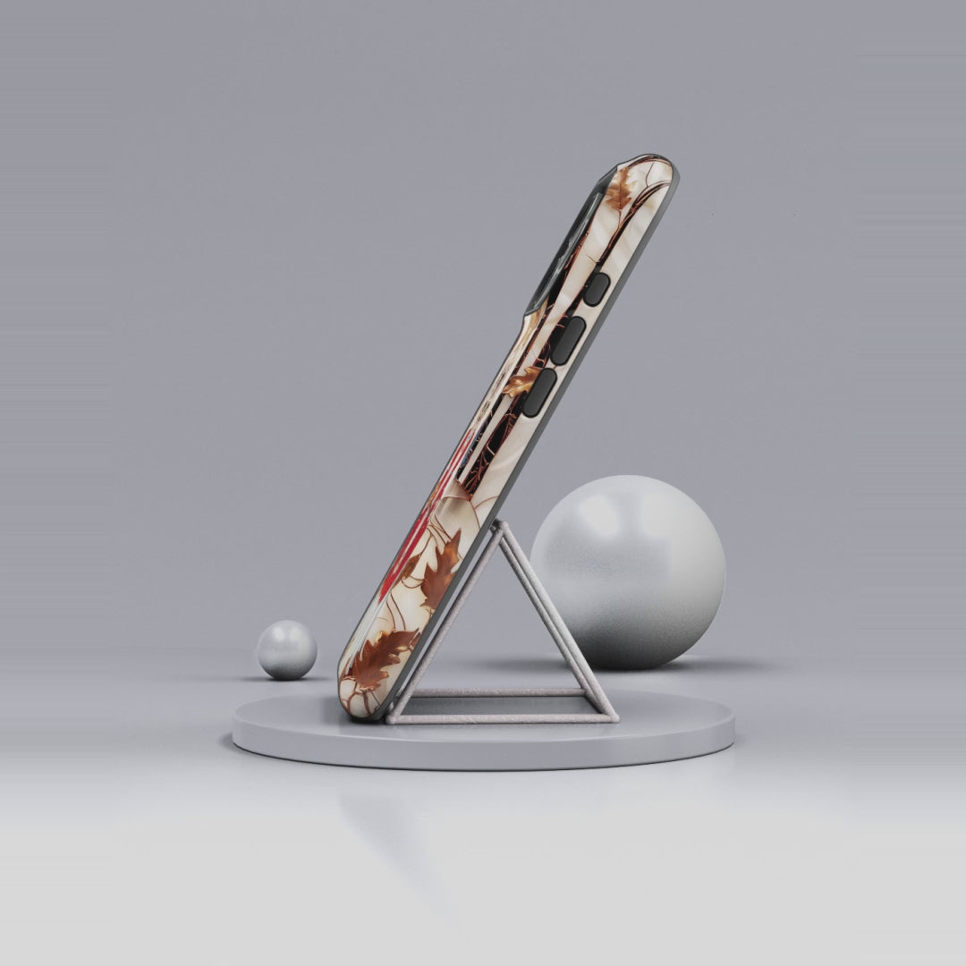 A hard-shell protective phone case wrapped in a whimsical stained-glass style illustration of a regal cat in a red coat, surrounded by fluttering butterflies and autumn leaves. The imagery feels like a little story paused in glass — antique colors, soft translucence, and fine linework that bring quiet charm to everyday use. The dual-layer construction and silicone liner give confidence when you slip it into a bag or hand it to a friend, while the glossy or matte printed finish keeps the artwork vibrant. It’s a compact way to carry a touch of vintage fantasy and gentle humor with you, whether you’re stepping out for a coffee run or settling in for an evening of reading.
