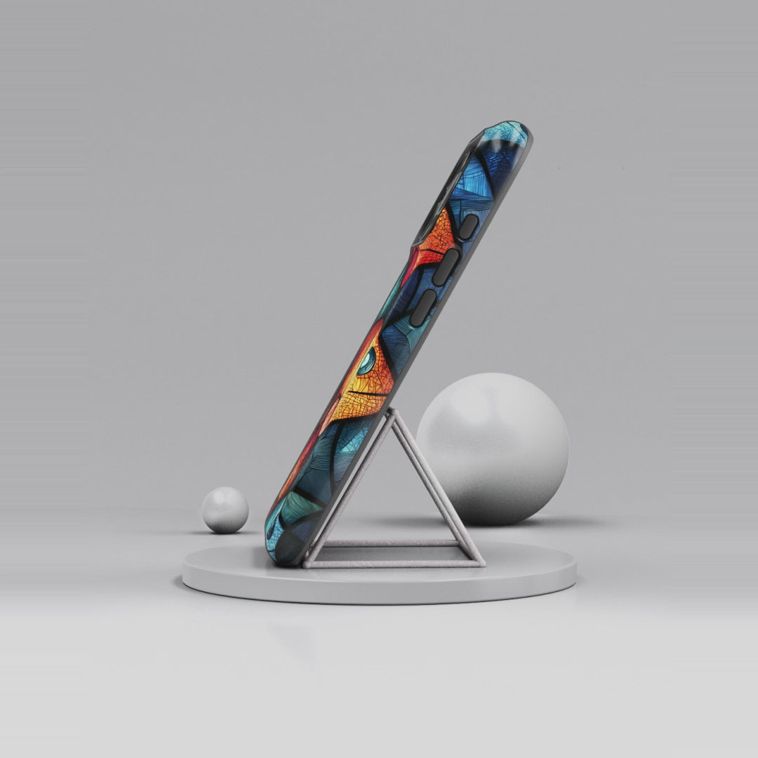 A vibrant, protective phone case that brings bold, stained-glass-style fish artwork to your everyday carry. The dual-layer construction combines a glossy or matte polycarbonate shell with a soft TPU silicone liner for shock absorption and secure drop protection. Rich, full-wrap printing preserves the artwork across the back and sides, while UV protection helps keep colors vivid outdoors. Thoughtful cutouts maintain clear ports and wireless charging compatibility, so your phone stays functional and striking on the go.