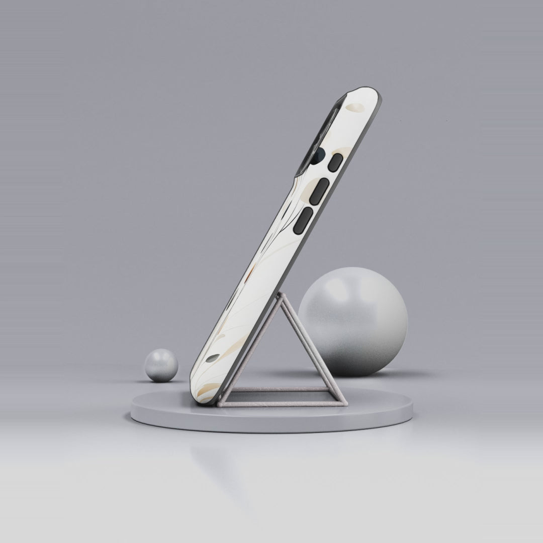 A slim, protective phone case with a soft botanical illustration in neutral tones. The dual-layer shell pairs a rigid polycarbonate exterior with a TPU silicone liner for shock absorption, while full-wrap printing keeps the delicate stem-and-seed design visible from every angle. Finished in your choice of glossy or matte, the case resists outdoor fading thanks to UV protection and keeps ports open for easy charging — including wireless charging support. Lightweight and refined, it brings calm, natural style to everyday carry while protecting your device from drops and scrapes.