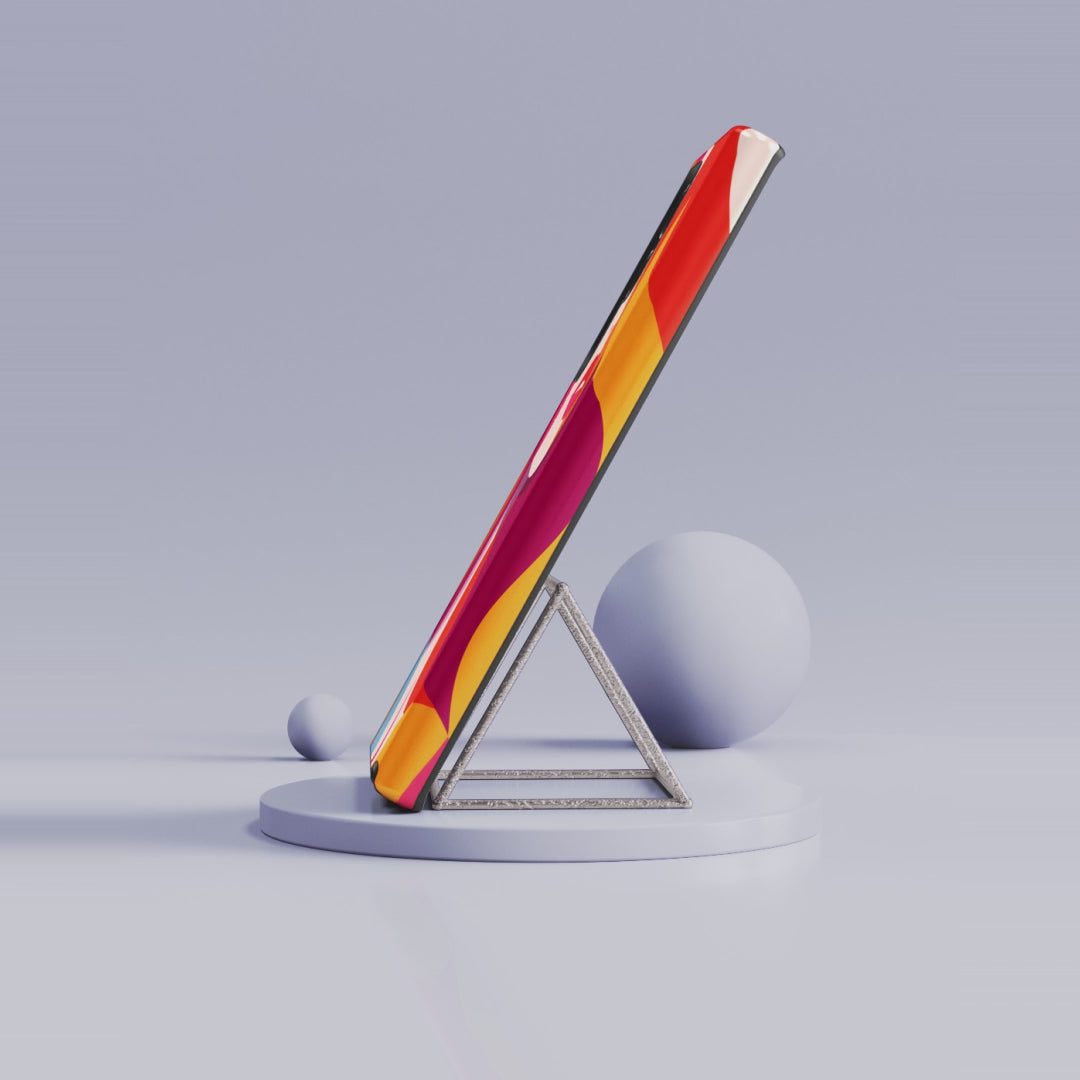 A vibrant protective phone case that brings bold, retro-inspired art to your everyday carry. Warm oranges, reds, and magentas flow in layered shapes to form a stylized portrait — a confident, artistic statement that brightens your pocket or bag. The dual-layer construction pairs a rigid polycarbonate shell with a soft TPU silicone liner for shock absorption and easy grip. Finished in your choice of glossy or matte, the print wraps fully around the case for uninterrupted color and coverage. Built for daily life: clear access to ports, wireless-charging compatible, and treated for outdoor durability so the design stays vivid through commuting, coffee runs, and late-night outings.